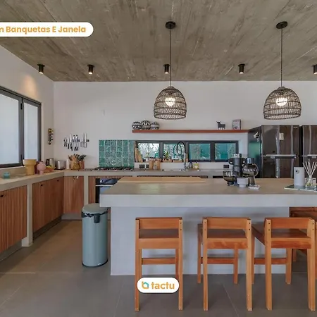 Offering a location approximately 10 minutes' drive from Rogerio Bugueiro, Vila Juriti: Casa De Luxo Frente Mar Em Fortim gives access to various tourist spots in the area. Providing an outdoor swimming pool, this 7-bedroom beachfront villa also offers water sports activities for active guests.
